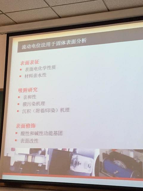 天津奧辛博科技有限責任公司于2016年3月24日在天津工業(yè)大學紡織學院舉辦了有關固體表面Zeta電位儀的原理方法及應用報告會。會議特邀奧地利安東帕公司資深工程師張松為學院老師及學生詳細介紹儀器原理、方法及相關應用領域,滿足了學院師生對儀器深入了解學習的要求。首先通過簡單形象的圖形讓與會者輕松了解儀器工作原理方法,接著詳細介紹了儀器的應用領域,并結合紡織學院有關研究方向有針對性地列舉應用案例。會后,張工耐心詳細地解答了與會者提出的相關問題。